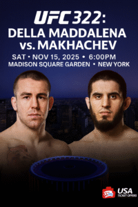 Get ready, fight fans! The octagon returns to the world-famous Madison Square Garden for an electrifying night of action — UFC 322: Della Maddalena vs. Islam Makhachev, happening on Saturday, November 15, 2025, at 6:00 PM.